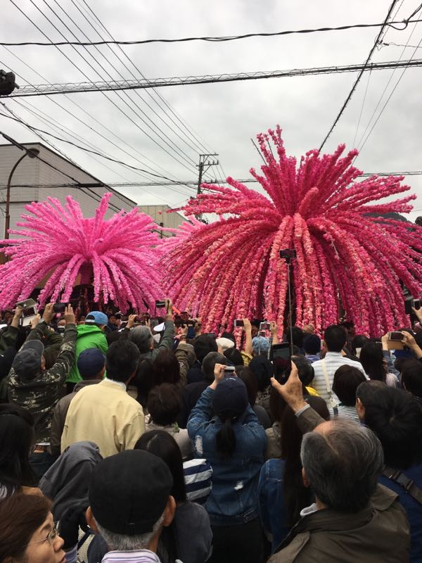 地元の祭りがございまして沢山の観光客が花神輿を堪能しました。 今年は雨が心配されましたが無事にできました。
