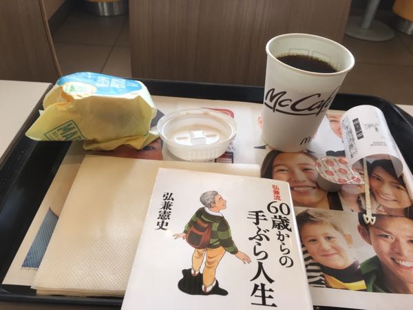 朝マックしてます。 いよいよ還暦が近くなり人生80年として起承転結 でいけば結に突入。 無理にストレス溜めて事に挑まなくても、避ければ いい話。 これ以上人間が成長するわけでも・・。人に迷惑 かけなければいい。 事務所にも毎朝行くのも減りました。 メールで、お客様に直行と送り、朝マックで読書。 弘兼憲史さんの手ぶらの人生は参考になります。
