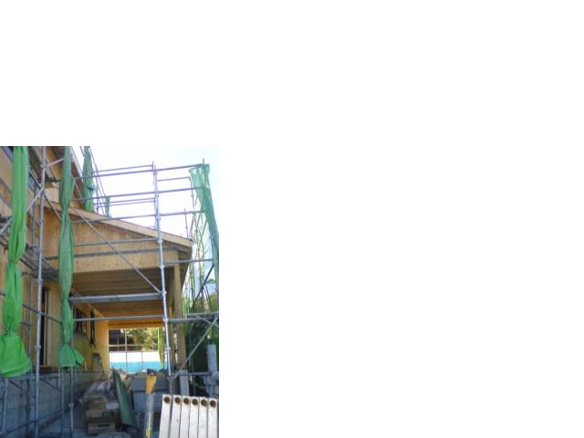 今日は玄関ドアが入っているか気になって4日ぶりに現場へ行ってきました今日は営業さん(うちの担当の上司さん)の上棟って聞いてるので工事担当さんもそっちの方へ行っていて居ないもようです台風の影響で雨が続き 今日はすごい風が吹いてます現場は3人ほど職人さんが。どうやら屋根やさんのようでしたスッゴク男前な方でしたヨ来週には瓦がのるようでした結局玄関ドアは設置されていませんでした ガレージ部分ですね リビングの5角になったところ何て言うんだっけ