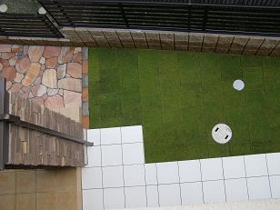 家の周りが出来きてきました今日はなぜか カラー表示がでないまずはアプローチから 階段を上がって、サークル付きの 再びアプローチ そして 右側が玄関になります玄関の奥が、 家の裏側はリブブロッグの両面タイプを積み、何ヶ所かに たまゆらのガラスを組込みました裏側は、ほとんど人通りがなく ちょっとモッタイナイ気もしますが・・・そして、、、パティオの外側は と なります。 玄関と反対側の北側には 家と同じ瓦付きの 車庫がありますおやおや 今日の突風、画像の中に お花が倒れてるのがありますヨ持ち主は うちの婆さんですが、そんな事は一切気にならないお方へっちゃらです
