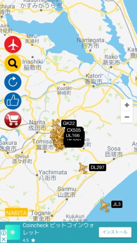 スマホアプリの「Air Tracker」ってプログラムで飛行状態を表示しているだけかと思っていましたがリアルで現在の状況が表示されているようです。「昨夜の成田空港」「現在の成田空港」「こちらは昨夜の羽田空港」