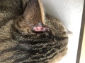 朝、マロの顔を見たら、耳の横に酷い爪痕がありました。昨夜は、全く気がつかなかったのですが夕食後の散歩の時に喧嘩したようです。マロは、FIVなので化膿しないと良いのですが・・・。以下閲覧注意。