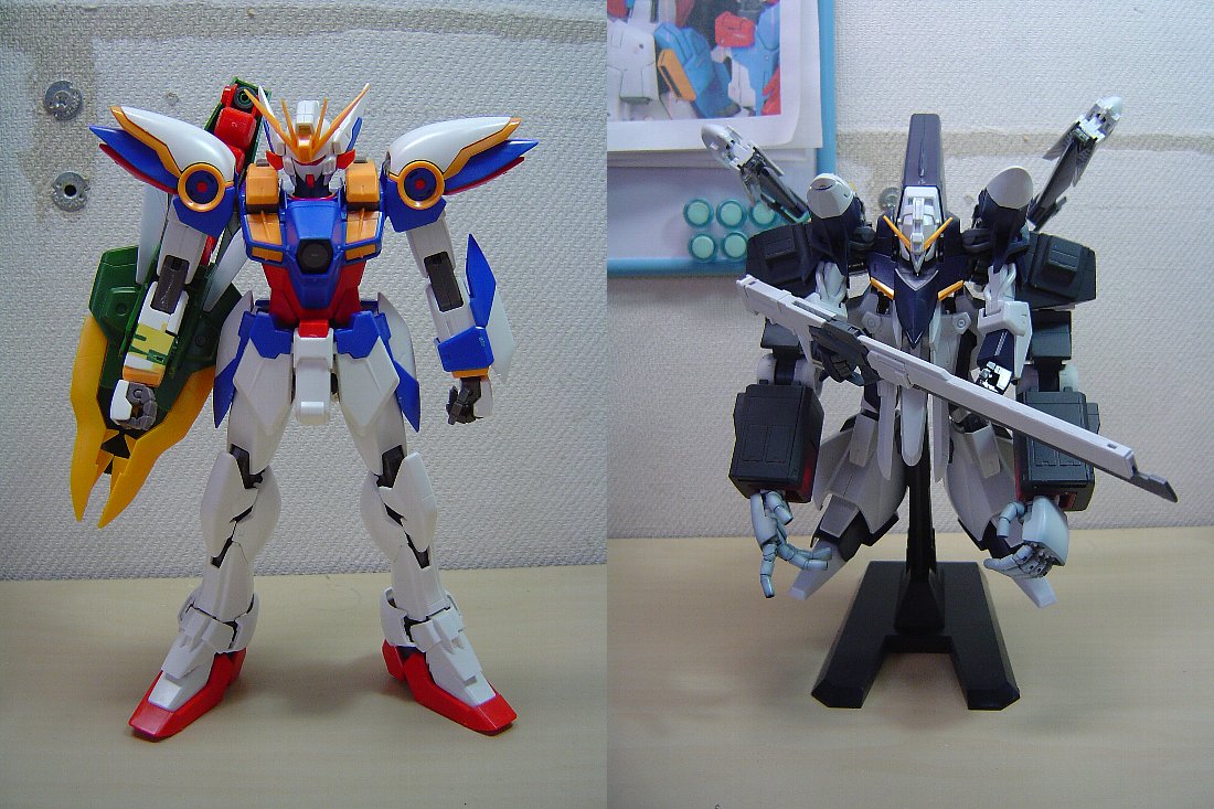 ウイングXナタクのほうは、右前腕の加工をしました。ウイングガンダムの前腕を上下に切りわけてその間に、ナタクのキットのドラゴンハングを取り付けるために、その部分を切り離して合体!!