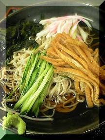 テーブルを た卓上~ぅ。。。今日のランチは、冷やしキツネそば。この季節になると冷たくてスルッとイケる麺はいいですな~。油あげ沢山はいってると嬉しいもんさ♪黄金週間GWの間の平日って何げにゆるいもんだな。。。