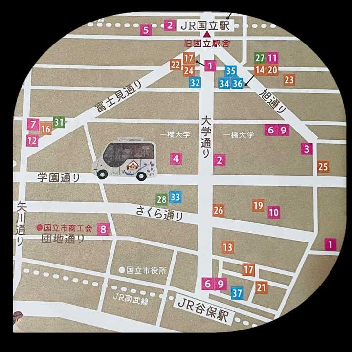 国立駅の観光マップも配布したりしていて、それを見て気づいたんだが