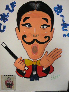 本日岡山は 秋の桃太郎まつり。(連休の三日間だったらしい) そのイベントの一環として 石山公園ステージでは かのマジシャン、ムッシュピエール氏のマジックショーがありました。 本日もお休みのすぬこ、もちろん見逃すテはありません。 会場で マジック仲間のWさん親子と合流し、 三人で観賞であります。 う~~ん、トレビあ~ん 彼のマジック、一口でいうと キレがある そしてその技術は さすがに洗練されてるな~。 昨日の似顔絵をコピーして 掲げていたら 気付いてお礼を言ってくれました。 そのあと、第1部の公演を終えて帰ろうとするムッシュを Wさんが 追っかけて写真を撮らせてもらおうと言うので、 車に乗ったところへもう一度行くと、 なんとムッシュ、「その似顔絵、ちょうだい」って言ってくれまして、 (コピーだったんですが) 受け取ってもらいました。(下手なのにごめんなさい) 第二部も観ようと 再び時間をつぶして待つ三人。 その間に Wさんは 家に帰り、 シルクのハンカチと 筆記用具のマジックを持参されまして、 こんどはサインをいただく気満々 (すごいアタシよりミーハーだわ) 車から降りてくるムッシュを待ちうけ、直接ご本人にお願いしました。 でも、当然その場では サインなんて していただけるはずもない、 マネージャーさん(?)に、 あとで 控え室のある ある建物に来てくださいと言ってもらえ、 二部終了後に なんと じきじきに書いてもらえました。 少しお話して、ツーショット写真も撮らせてもらい ソコまで期待していなかったすぬこ、 も~~ 有頂天の 大大大大大満足 (でも、写真は載せれないわ、だってアタシがはっきり写ってるんだもの) 今夜は興奮して 眠れそうにないわ、うふふ。 (キモイ)