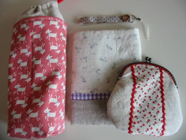 がま口財布、縫い付けるタイプのものを使ったのですが、こっちのほうが私には難しかったです。すっごく時間かかりました~。ブックカバーはフリマボックスのお客様からのリクエストです。他のデザインでも今作ってます。携帯のストラップは前々から作ってみたかったものです。
