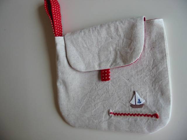 バッグと布小もの という本を参考にしてつくりました。この本は通園通学のアイテムがいっぱい載ってて、とっても実用的です。チェーンステッチとうのを久々にやったのですが(まどの部分です)、糸のひっぱり具合がむつかしいですよね??なれていないせい?でもステッチとかいれると手づくり感がアップしていいですよね。これから少しづつ取り入れていこうかな。