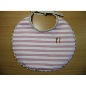 表はニット裏はワッフルです。リバーシブルで使えるようになってます。家の次女よだれもすごいし食べるのも豪快。まだ1歳3ヶ月なのに長女よりもよく食べます!!check&stripeさんのタグをつけました。裏返すとこんな感じこちらのワッペンCotton Leafで扱ってるものです。リネンのバイアスもCotton Leafものです。本に掲載されてるものと色違いで、しましまも一緒でワッペンも似たような感じでつけました。ほとんど一緒!でも後で気づいたのですが、型紙、1センチの縫い代つきだったのをしらず1センチ余分につけてしまったので少し大きいかも、、。首周りがきついかも、、。まだ試着してないのでわからないですが。