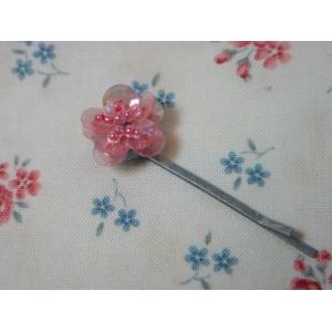 先日の更新で入荷したヘアピン土台をつかいました。このビーズのお花のモチーフはスパンコールと小さいビーズで作ってます。