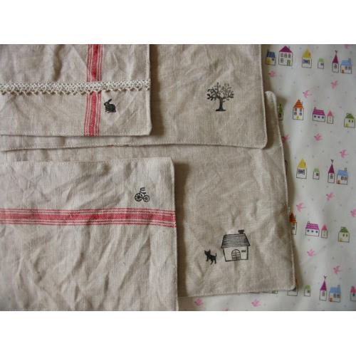 リネンにスタンプをおしておやつマットをつくりました。アイスクリームやカキ氷を食べるときに小さめのマットがあったらいいな~と思って スタンプをぽんぽんおしました。おうちと猫がかわいくて気に入ってます。こちらのスタンプはデイリースタンプ Countryです。布用スタンプ台はこちら