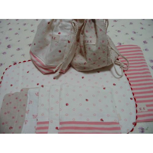 長女の幼稚園用につくりました。コースターはお家で使う分です。ピンクイカリワッフル4枚セットで作りましたほとんど生地を使い切りました。巾着のひもは麻混みつあみ風コードMをつかっています。スタンプテープにピンクの布用スタンプ台で英字スタンプをおしました。ピンクの生地にピンクって女の子らしくってとってもかわいいです。てんとう虫の綿麻の生地ですが、洗濯してもあまりしわが気にならないのでよく洗濯するお弁当袋などにはとても良いですよ。shopの情報です。今週中に新しい布をご紹介できそうです。YUWA綿麻スラブの新柄や童話コットンかわいい水玉模様、など入荷予定していてます。