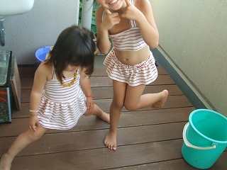 ボーダーニットで長女と次女の水着をつくりました。薄手のニットなので水着にも大丈夫ですおそろいってかわいいですよねベランダでパチリ☆次女はぽっこりおなか、なのでワンピース型長女はおなか出すほうがいい!といってたのでビキニ型にしました。 早速今日プールに行ってきました♪ふたりともこんがり焼けてきましたよ~ ハンドメイドブログランキング参加しています人気blogランキングへ