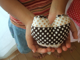水玉スイーツ水色の生地とピンクのピンドットでこどもたちのランチョンマットをつくりました。とってもラブリー♪ふたりともとても気に入ってくれました。最近、毎日夜中にミシンしてます。2時間ぐらいでできあがる簡単なものがすきです♪ 昨日から長女と作っているハートのクッションいま長女が横でおもちゃのホンカクミシンでカタカタと縫ってます。電池が減ってくると縫う速さも遅くなってくるみたいでそれぐらいが一番ちょうどいいんです。新しい電池いれたてのときってびっくりするぐらいはやい~おもちゃでも速さの調節できたらいいな~と思いますハートのクッション出来上がってから、あ、、レースつけたかった~ってゆって今手縫いでつけてます。針を持つ手がまだまだあぶなかしいです 人気blogランキングへ