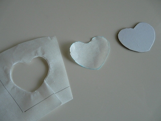 折りたたみ式バッグハンガーそのままでも使えますがやっぱり、上の部分に生地をかぶせるとかわいくて愛着がわきます♪ 私が作った簡単な作り方紹介します他に、こんな風にしたらもっといい!とかやりやすいとゆうのがあったら教えてくださいね まず、ハートの型をとりますこれが以外とむずかしく、型に紙をおいて鉛筆でなぞってもハートがいがんでしまうので型紙をうつすコピクイーンをハートの上においてハートの形につめでかたをつけて 切りました その切りぬいたハートを厚紙に写します(写真左から3ばんめが厚紙)厚紙より1cmぐらいのところで生地をカットします 片面接着芯をハートの型紙通りにカットしてアイロンで接着し端から5ミリのところをぐるりとなみ縫い一周なみ縫いのあとハートの厚紙を上においてからギュッと絞ります金具のハート部分にボンドをぬってさっきできたハートを置いてはみだしてくるボンドをティッシュでふいて当て布をしてからセロテープの台など重たいものをおいて押さえておきます 出来上がり簡単なのでぜひ作ってみてくださいね! ラミネート先染め赤X紺でバッグを作りました雑貨屋でみかけた、チェックのこんな形のバッグラミネート生地でも作れるかな、、と思い作ってみましたサイズはこれぐらいだったかな、、と先に紙で型紙を作ってこの生地は比較的やわらかいのでタックをとっても大丈夫でした中はバイアスでくるんでバッグ口のところは綾テープを縫い、マグネットボタンをつけました