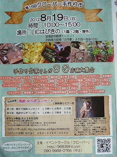 第16回 クローバー手作り市の フライヤーが届きました8月19日(日)10~15時LICはびきの 1階2階 屋外こちらのイベント 回を増すごとにお客様も増え出店店舗数も増えて大きなイベントになってきてますこちらの会場ではいつも一緒のTOO&RINさんと2人で出店しますブースが角だったらTOO&RINさんのワークショップがあるのでまたお知らせさせていただきますね 人気ブログランキングへ