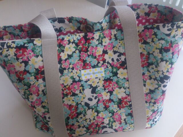 かくれぱんだの生地 再販ですショップは まだ更新してませんがシーチングもあります。こちらは 10番キャンバス帆布よりやわらかいけど 厚みがあり バッグにいいと思いますマチがたっぷりのトートバッグしっかりめに仕上がりました 肩から下げれますこちらの色違いのグリーンは内布にも接着芯張ればよかった、、。少しくったりぎみ久々に 自分用♪人気ブログランキングへ