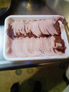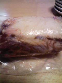 先日の飲み会はホント食べました~海の幸太刀魚の刺身・フグ刺し・ミンク鯨の刺身・鯛の刺身・伊勢海老の刺身山の幸猪肉の焼肉・鹿刺し・熊肉・ウド・天然のクレソン・エンタイブ・天然の三つ葉などや山菜多種・・・(名前が覚え切れません) 赤米とか言う古代米のおにぎり・ワラビのおにぎり・きのこのおにぎり、そしてデザートは大きくてあま~いイ・チ・ゴでした~ 伊勢海老はテレビでしか見た事のない、大きくてあま~い物でした海の幸は魚関係の仕事をされている方が持ってこられ、山の幸はI指導員さんです残念な事に写真を撮り忘れちゃいました予定以上の人数でしたが、それ以上の食材が集まり最後まで後片付けをした特権で残った食材を頂けましたホント楽しかったですぅ~頂き物の一部である・・・熊肉ですとりあえず焼いてみました今まで食べた事のない濃厚な味の肉でした。I指導員さんが言われたように、脂が美味しかったです。でも・・・もう少し薄く切れば良かったかな