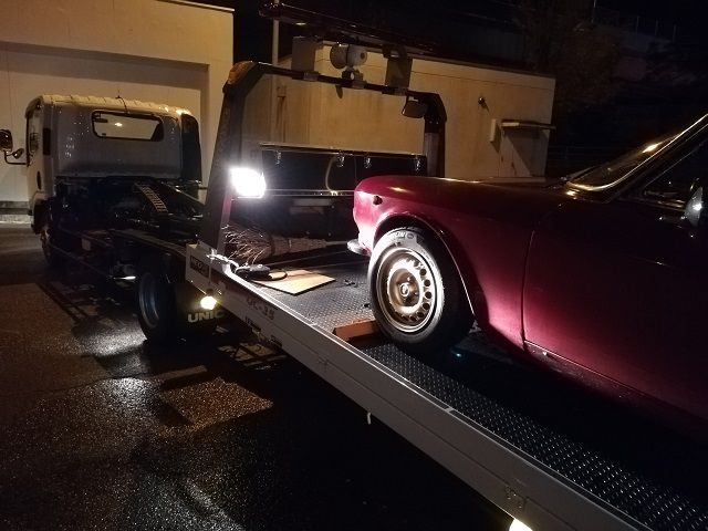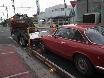 みさなん、私は生きてます。そして久しぶりの更新がこんな写真でごめんなさい…orzパン屋さんの駐車場に停めて一通り食事した後、店を出ようとしたらクラッチペダルがスッカスカ。クラッチを切ることができないためギアを入れることができず、立ち往生確定でした。ちょっと調べたところ、クラッチフルードが空っぽになっていました。気づかないうちにどこからかフルードが漏れていたか、単純にクラッチのマスターがお亡くなりになられたか…いずれにせよなんともならないため、素直にロードサービスを呼びました。最初に来たロードサービスのトラックには、車高(エンジン高)が低すぎて載せられず、もう一回ロードサービスを呼ぶハメになったのも、ネタとしてはアリかと思われますwとりあえず我が家まで連れ帰ってきました。フルードを入れて、クラッチが復活したら、そのまま主治医の元へ走っていきたいと思います。もし復活しなかったら…どうしよ?(爆)二週間後にイベントを控えているので、何とか早く治ることを祈りたいwしかし、156もそうでしたが、私はどうやらクラッチに泣かされる運命にあるらしいです(笑)KEN-1 HAYASHIBEイラストアルファロメオ ジュリア2000GT VELOCE イラスト【林部研一】価格:1,890円(税込、送料別)Road of Classic Cars 60年代〜80年代の名車たち「アルファロメオ ジュリア クーペモデル」価格:105円(税込、送料込)