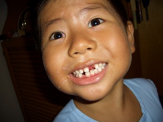 今日はさえのポリオ2回目の予防接種でした受付が1時10分からだったのでひろのお迎えを早めにしてそのまま3人連れて会場へ行きました着いたらかなりの人数が並んでてビックリ!前回も同じ会場だったけど少なかったんですよ~市が合併したのも関係あるのかな?かなり遠くの人も来てるようだったしまあ私も遠い方だからあまり言えないか~この会場は駐車スペースが多いし日にちが早いんですよね今後の予防接種をスムーズにさせるためにはできるだけ早くポリオを終わらせたかったんです結構みんな考える事は同じだったりしてねポリオの接種はすんなりいったんですが、ポリオって接種後30分は指しゃぶりとかダメですよねさえの場合、最近上の歯が生えてきてるせいかよだれが多いんですよ~よだれが出るたびに脱脂綿で拭いてもらってましたよだれがついた服は熱湯をかけて別に洗ってくださいって言われたし・・・どこまで気をつけたらいいんでしょうね帰りに給油と洗車してからひろたちの希望で生協のお店にお買い物へなんでここがいいの?って聞くと「いっぱい食べるのがあるから!」だって^^;確かに果物とかパンの試食がいっぱいあるんですよね今日は梨とバナナとくるみパン、他に焼肉もあったかなとりあえず一通り食べてましたあ、でもちゃんと梨とバナナは買いましたよ~そして一応予防接種の会場で迷惑かけずいい子にしてたので一人1個ずつ100円以内のお菓子を選ばせましたしょうは選ぶの早かったです迷わずこれ↓を持ってきましたひろはなかなか決まらず・・・結局しょうと同じものいつも大体こうなんですよね家に帰って早速食べてた二人しょうは食べるのも早かったひろは半分ぐらい食べたところでなんとこの前からグラグラしてた上の前歯が抜けちゃいました下の歯も1本抜けてるのでなんともお間抜けな顔になっちゃいました今日抜けた横の歯もグラグラしてるんですよね~これが抜けたら食べにくそうですねさてこんな写真を撮ったりしてるうちにさえがやらかしてくれましたひろが食べてた残りのカプリコを食べてしまってた><さえは満足そうに口のまわりチョコだらけとうとうチョコの味を覚えてしまったのね・・・まだ早いと思うんだけど~これから大変だわ^^;