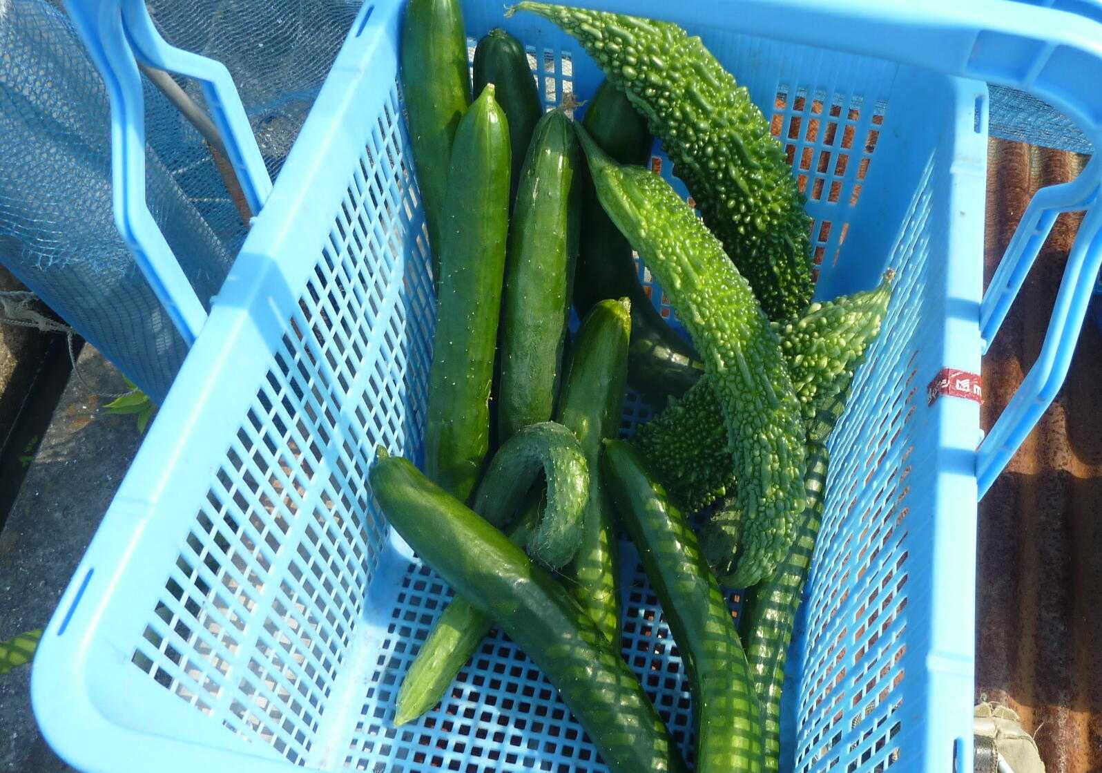 どうもっ・・!朝はどんより時折パラパラしてましたが3時頃からは晴れ間畑メーンでゴソゴソできました。。。日曜日の午前中の収穫作業があったのでゴーヤ2本だけやったのはイチゴの撤収雨が多かったせいか苗は根付いた感じ用心のため2株ほど親を別に移植しておいた。。。知らぬ間にヒモ唐辛子も出来てきてますトマトは伸びきったので屋根のある部分はてっぺんをカットしネットをあげました鳥除けネットと排水口用のネットをしてますが案外虫が多いのは。。。。午後の収穫色々キャベツは沢山収穫しようと思ってたがムシ被害が多くて処分した調理の際に嫌な思いはしたくないだろうから。、。、。じゃ、また