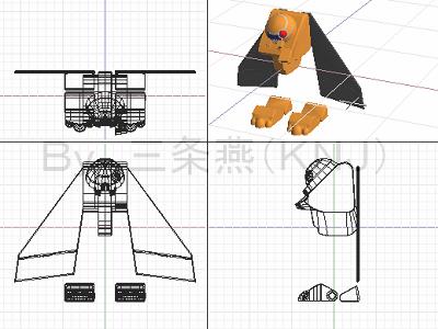 『今日も張り切って作るぞぉ!!』と、PCの前に腰を降ろし、そして『やる気充電』の意味も含めて今まで作り上げた部品を完全な3DCGとして出して見る『おおぉぉぉぉ すげぇーー!!』などと 自己陶酔に浸りながら色々な角度から見てると・・・『ん?』一応別の角度に変えてみる『・・・・』『おやぁ?!』気付いてしまったのです想定外の所に影が発生している事に透視図を見てもそんな所に出っ張りがあるように見えないんだけど確かに 3DCGにして出すと出っ張りがあるようなのですその想定外の影発生場所は実際には滑らかな表面であるべき所なので尚更目立ってしまい 何とか原因を見つけて修正を! という事で 只今、頑張ってる最中です。作業で影が消えたと思うと別の場所に影が発生しそしてそれを修正すると形が崩れていくという悪循環を繰り返してます。この調子だと当分 製作過程の図は展示出来ないかなぁ
