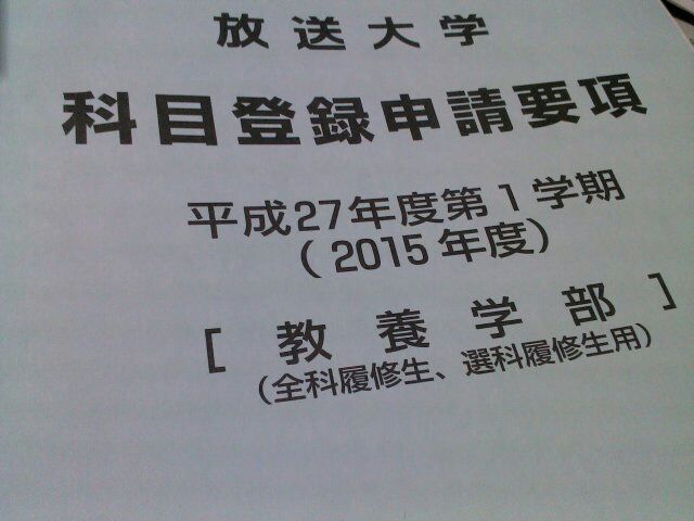 新年度、1学期の放送大学の履修科目登録。 行政書士をはじめた場合に役立ちそうな科目をいくつか選択。 卒業のことは考えていないから、6単位だけ。 で、科目登録の通知と授業料の振込用紙が届きました。 そしたら、希望していた面接授業(放送じゃなくて、学習センターとかに行って教授や講師から直接授業を受けるやつ)が、ひとつ、希望者多くて抽選で漏れたということで受けられないことになっていた。 残念。 来月、定員割れの面接授業が発表されるから、おもしろそうなやつがないかさがしてみます。