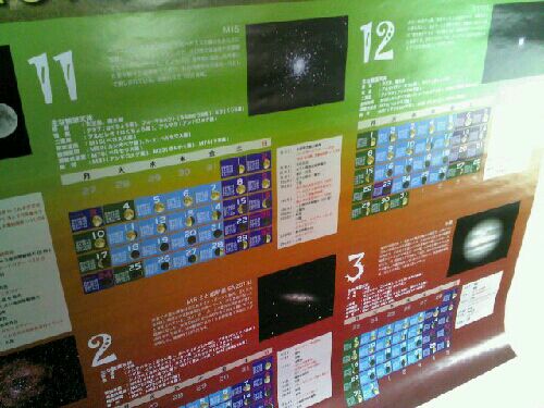 4日は皆既月食でしたが、 まったく見ることはできませんでした。 ここ最近は、わりと頻繁に皆既月食があったように思いますが、次は2018年。 その次の皆既月食(月出帯食、月没帯食を除く)は、2022年。 そう考えると、ほんとがっかり。 来年3月に東南アジアで皆既日食があります。 だれか一緒に行ってくれないかなぁ。 画像は、ぐんま天文台のカレンダー。