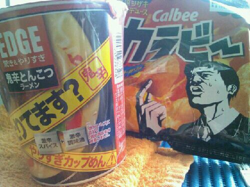 テレビ欄見てたら、2時間ドラマの紹介があって、 見たら滝藤さんの名前があったので見ました。 松本清張さんの2時間ドラマを見るのはたぶん初。 滝藤さんいいわぁー。 昨日、スーパーで買ってきました。 カルビーの、カラビーというお菓子と エースコックの、辛いラーメン。 カラビーは、ぜんぜん物足りなかったけど、 ラーメンは強烈だった。。 やばいやつでした。 この甘い飲み物で迎え撃って、 なんとか完食しました。 スープは飲めませんでしたけど。