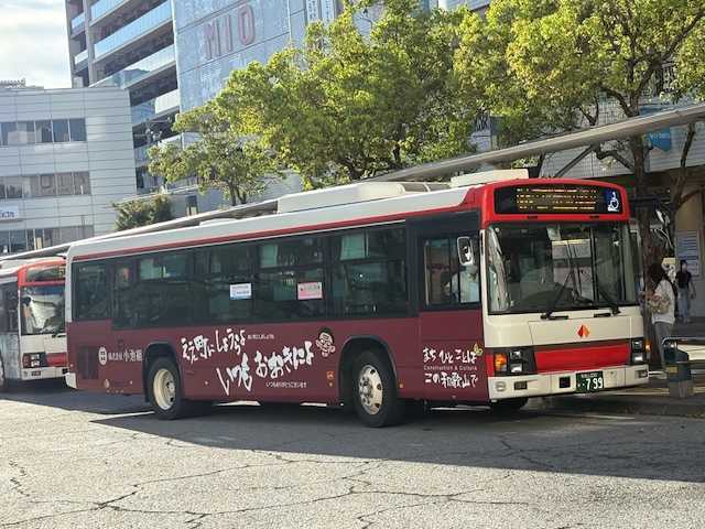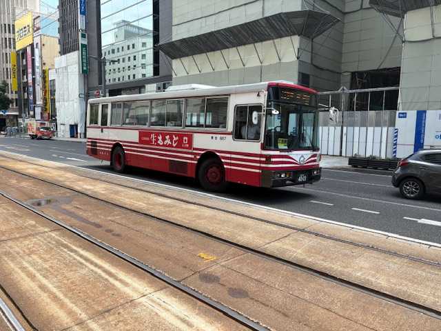 先月、広島市内へ行ったときに見かけたバスです。 広島バスです。この車体は西日本ではやや珍しい部類に入る富士重工製の車体に三菱ふそうのシャーシーを組み合わせたもの。1995年製造だそうで製造後30年が経過しているんですね。広島バスは割と古めの車輛が多いのですが、近々置き換えになってしまうのでしょうか・・・。 カープのラッピングがなされた備北交通の高速バスです。広島県の県北の庄原市や三次市からやってきたんでしょうね。 広島市内のバスといえば、先の広島バスもそうですが古めのバスが多くて、他社からの移籍してきたバスも多かったのですが、新しいバスも増えてきています。今回、路面電車以外にバスに乗ることもあったのですが、いずれも大阪や奈良で見かけるJ-BUSの最新車両でした・・・。