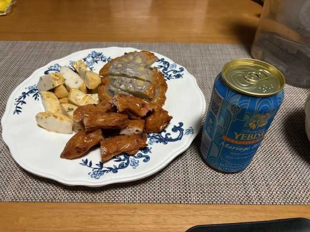 今日の晩御飯は、居酒屋のようなメニュー。たまにはこんなのもいいよね。 っていうか、先日妻が息子の住む北九州へ行っていて、その時に買い求めてきた練り物の数々とビール(そのあとに梅酒ロック)でいただきました。 練り物好きは亡き父も好きでしたから、わたしもそれを引き継いでいます。 こんな感じでいろいろお土産を買ってきてくれましたが、その中で左上に写る「ふく茶漬け」を仕上げにいただきました。 袋の中には、このようにフグの身が入っている本格派でした。北九州の対岸は下関、普通に下関のものも売っているんですね。 ほんとに居酒屋のような夕食、結構飲んだのでいい気分です(笑)