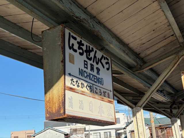 ふらっと立ち寄った駅を紹介するこのシリーズ、第67回目はわかやま電鐵貴志川線の日前宮駅です。 和歌山駅から数えて2駅目になります。 駅の外はこんな感じ。駅舎はありません。 駅の外にこの日前宮駅の近くにある「日前宮」の紹介が書かれた看板がありました。 駅のホームは、とても狭いですね。 狭いながらもここで行き違いが行われます。これは貴志方面を見ています。 こちらは、和歌山方面です。構内踏切があって、ここをでて少し歩くと「日前宮」があります。 ちょうど貴志行きと和歌山行きの交換する場面がみられました。 さて、この駅名の由来となった「日前宮」は、先の看板にも書かれていましたが、『日前神宮(ひのくまじんぐう)と國懸神宮(くにかかすじんぐう)の二社一体の大社』とのことです。 お参りもしましたが、境内は撮影禁止のため、外からだけ撮影しました。 和歌山の市街地にあって、木々が生い茂るところで神聖な場所っていう感じがしました。この日前宮の北側には、阪和自動車道和歌山インターへつながる幹線道路となっていて、私も何度も通ったことはありますが、この日前宮に行ったのは初めてでした。 また、この日前宮のすぐ西側には、戦前からの高校野球の古豪・向陽高校があります。向陽高校といえば、戦前は海草中学とよばれ、1939年の甲子園の大会では嶋清一投手を擁して全5試合を完封、しかも準決勝と決勝が二試合連続してノーヒットノーランといういまだに破られない記録を打ち立てたことで知られています。その嶋投手は残念ながら戦死されてしまったのですが、前出の記録は永遠に輝いています。 話を戻して、先日の和歌山への出張の際、仕事が終わってから休みをもらって立ち寄りましたが、一度行ってみたいと思っていたのでいい機会に恵まれました。