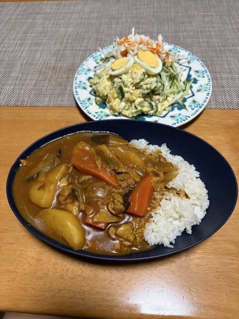 今日は金曜日、カレーの日ということで、今日金曜日に久しぶりにカレーを食べました。家のカレーですが・・・。 具だくさんのカレーにサラダです。 久しぶりでおいしかった~