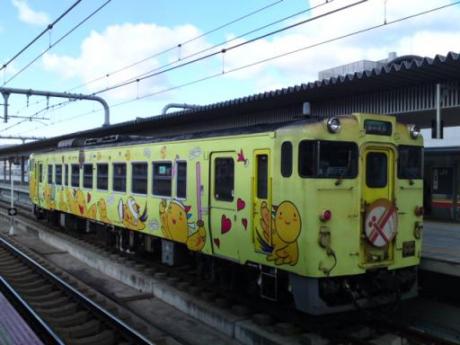 さて、このはばタンのラッピングが施されたキハ40は主に姫新線での運転となりますし、前出のとおり他の新しい車両が主力ですから見つけるのは難しいかもしれませんけど、かわいいはばタンの表情をみてください。