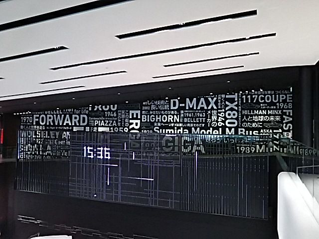 壁面には、文字ばかりがランダムに表示されていますが、よく見るといすゞの車名やキャッチコピーが描かれています。