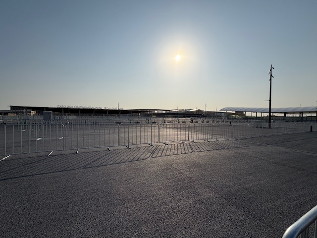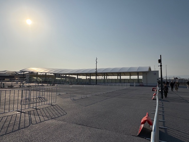 逆光でわかりづらいですが、ここが会場入り口になるそうです。かなり大きいスペースがありますが、チケットを持った人がここから入場していくんでしょうか。ここがいっぱいになるくらい来場者があればいいですけどね。