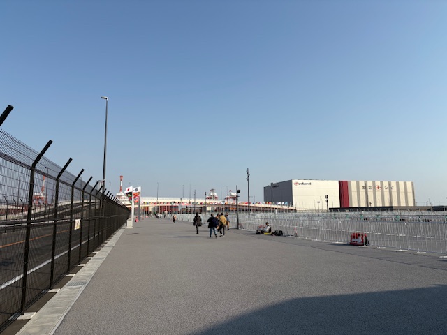 ちなみに、駅を出たところからは、あの無駄遣いの象徴ともいえるリングがわずかに見ることができます。