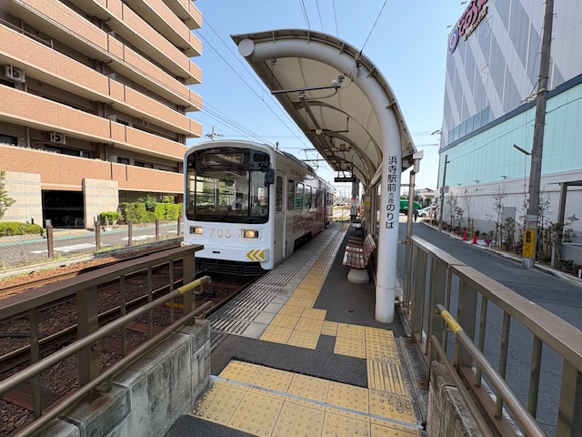 この電停は、2015年に開業と阪堺電車の中では一番新しい電停です。それまで東湊電停と石津電停の間には液はなく、吊り掛けモーターを響かせながら走っていたんです。1.3kmの距離は路面電車ではまぁまぁ長いですからね。
