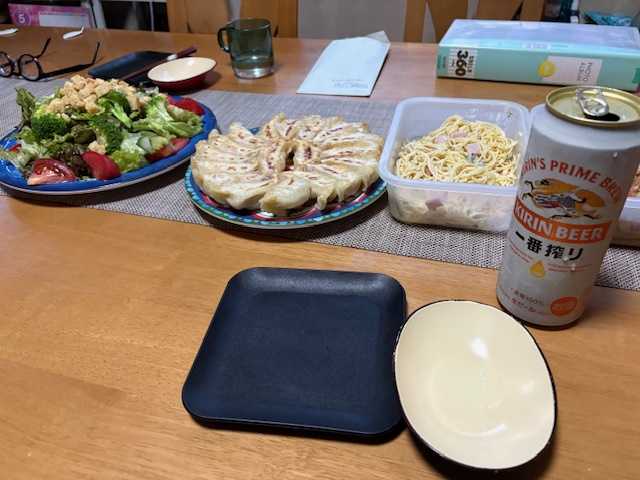 夕食は「餃子の満洲」の餃子を焼いて、ビールをいただきました。