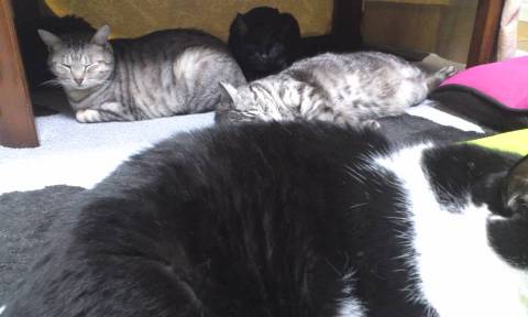くろくろでごあすもひとつくろでごあすこうなるともう、どのくろがどのくろかわかんねでごあす。我が家では3/9がくろでごあす。最大勢力でごあす。我が家の勢力内訳は、下記のとおりでごあす。くろくろ 3しましま 2しろくろ 1グレー 1三毛(四毛) 1ゆねったんは一般的には三毛だけど、本人いわく、白、黒、茶色、うすい茶色の4食なので、四毛だということでごあす。さて、問題はいかにして過半数をとるかでごあす。しましまもしくはしろくろと連立を組めば過半数でごあす。警戒すべきは、複数色で連立を組まれることでごあす。しましましろくろ三毛で過半数でごあす。さらに警戒すべきは、厳密にいうときんてろちゃんは胸毛が白いので単色ではねえでごあす。こっけちゃんも胸毛3本が白いでごあす。やべーでごあす。おやじちゃんおふくろちゃん、ラグビー観戦でごあす。先週にひきつづき、今週も母校が勝利でごあす。おやじちゃんの後輩たちは優秀でごあす。
