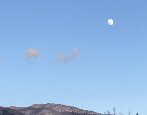 夕方、お月さまのぼってきたでやんす。美しいでやんす。14番目のお月さま。