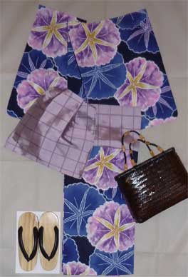 選んだゆかたは、紫やブルーの朝顔が描かれた紺のコーマ地。友人宅で昼間からダラダラ飲むことになっていたので、飲み疲れて途中で寝てもいいように(なんと無精なことよ!)、帯は兵児帯にして、帯揚げも帯締めもナシ。着つけも、らくちんなのを優先して、ちょっとゆるめに。