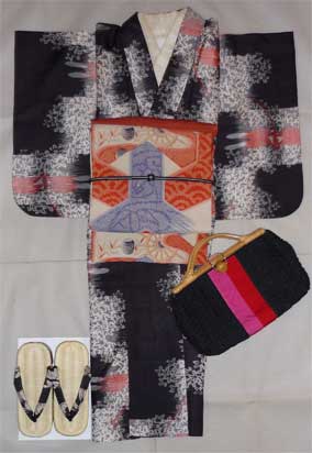 きょうは、うんざりするくらいの猛暑だったが、夜の外出だったので、夏キモノを選ぶ。黒地にトンボ柄の夏銘仙に、オフホワイト地にブルーとオレンジの柄が入った絽の名古屋帯。どちらもアンティーク。半衿は、生成りの綿レース。帯まわりは、テラコッタ色の帯揚げ、黒×白の三分紐、濃グレーのトンボ玉。