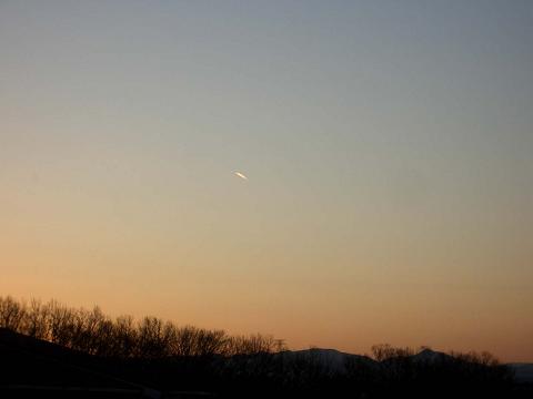 イヤリングの部がおわったよ~~~♪シゴトをしながらふと顔を上げたら、西の空にこんなシーンが。ときどき見かける、光のひとり旅。初めて見たときはUFOかと思いました。でもこれって、ジエット機が光っているんですよね?*up風景のプリズム★T駅を降りて★