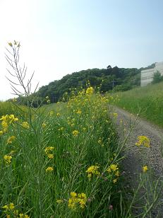きょうは近くの川へ、チョコッと散歩♪釣り人がいた。あ、鯉のぼり!。橋を渡る。菜たねの花の群。この植物は、なんという名かわからないけど、”カゼバソウ”と呼びたくなった。風場草って書くだ~。