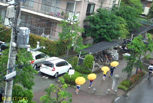 窓の下を、キイロい傘のお通りだキイロい傘の行進を見ながら、朝のコーヒー。雨もたのしいね。私も、これから街まで行ってこようっと。つづく・・・?・・・・・・W街の歩道橋から雨はほとんど止んでいたけれど、傘を入れて撮ってみた。予約していた美容院へに行ったら、混んでいて30分待った。終わって駅へ行ったら、事故で30分待った。こういう日ってあるんだな。オモロフシギ!おしらせ【虹の橋】のCDがでました5月17日毎日新聞記事です