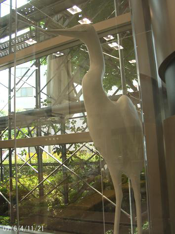 高さ1mくらい今日は早朝から出かけ、いそがしい一日でした。そんな中、こんなシラサギの彫像に出遭いました。最近になって、リビングから見える山にシラサギの集団が住みだし、景色がいっそう豊かになりました。その光景を写真に撮ったり、彼らが飛んでいるようすを眺めながら踊ったりしています。そんなシラサギな毎日なので、この像を見つけたときはまるで、シラサギの精に遭ったような、ふしぎな、一種の感動を覚えました。その記念に一枚だけでもと、眠いけどがんばって写真をのせました。