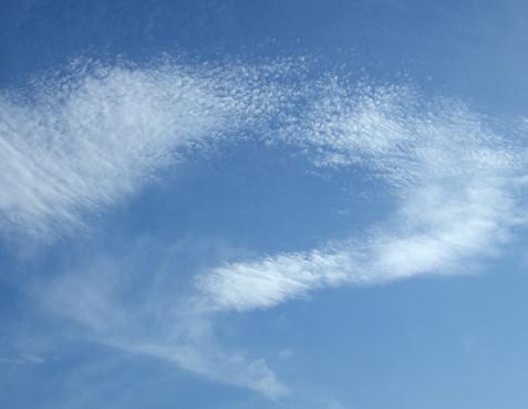 07/8/1/16:36?マークのような雲今日はどんなことに、出遭うかな?きょうはこれから、かっぽれの稽古に。帰り銀座にまわり、ともだちの絵画展を見てきます。しゃしんは8月の雲です。夕方でもこんなに明るかったんですね。では、行ってきま~す。