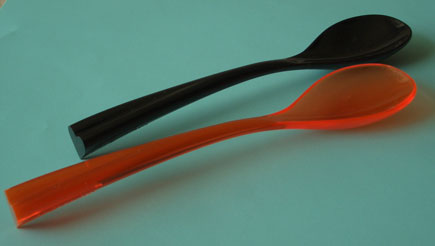 きのうの答えは・・・12.5センチスプーンでした♪ハロウインのプレゼントに、いただいたものです。オレンジの方はガラスのサトウ壷の中に。ブラックの方は、キッチンのシゴト台に常住、★キメのひと匙係★の任についています。スパイス、トッピング、ソースのデコレーションなどなど任務は多様におよびます。”ふたり”が出逢うのはいつかな、などと想像して遊んでいます。up窓日記★たまには ★