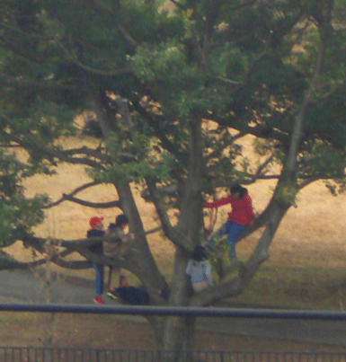わ、木登りだ!キッチンのベランダからでは、ご一緒に、た・の・し・そ・うたのしそう♪